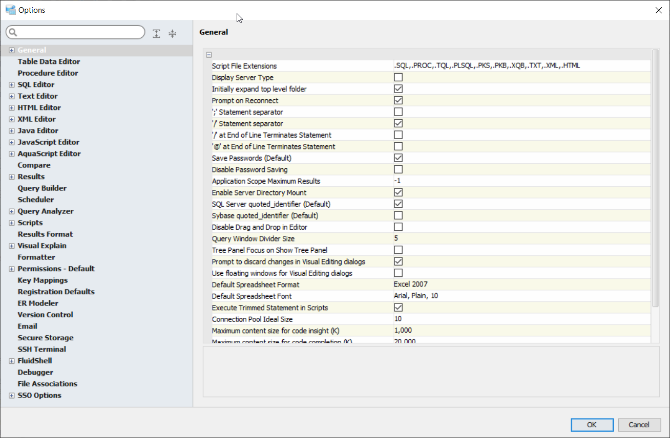 In Aqua Data Studio, you can open the Options window to change a lot of settings for the application.