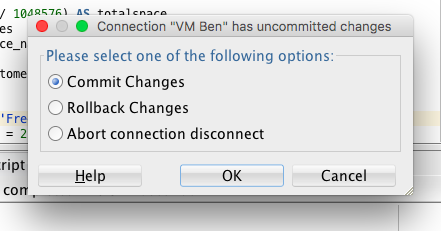 If you try to exit your IDE after running some DML commands (e.g. UPDATE), you could get asked if you want to commit or rollback your changes.